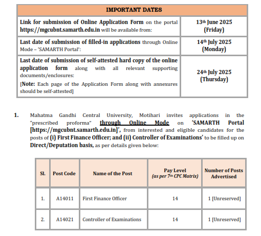 4.1 Interested and eligible candidates may apply in “prescribed proforma” through Online Mode on ‘SAMARTH Portal [https://mgcubnt.samarth.edu.in]’. Application forms must be filled only in online mode within the prescribed time limit. No offline forms would be accepted.